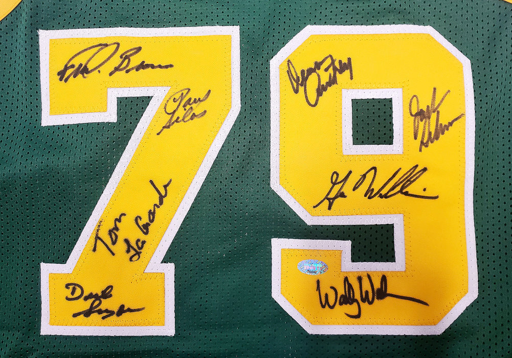 Multi Signed Autographed Signed 1978 79 Nba Champions Seattle Supersonics Green Jersey With 8 Signatures Including Fred Brown Gus Williams Mcs Holo 145850
